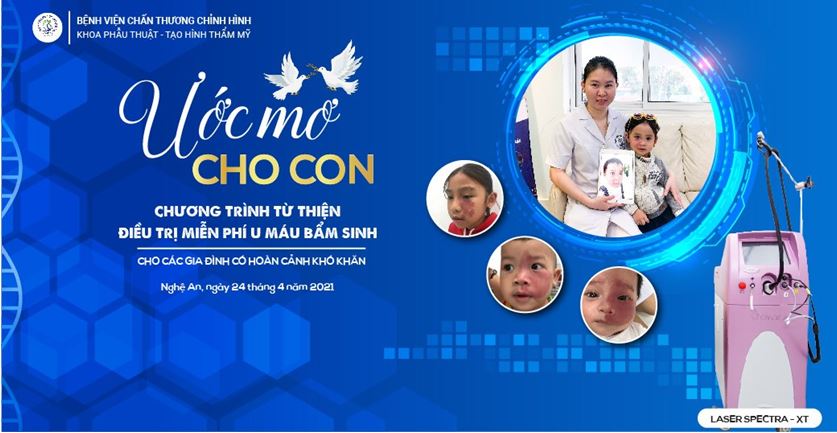 Nhằm sẻ chia khó khăn, mang lại cơ hội điều trị u máu, bớt máu miễn phí cho các bệnh nhi nghèo, Khoa phẫu thuật - tạo hình thẩm mỹ đã tổ chức một chương trình từ thiện mang tên " Ước mơ cho con". Tham gia chương trình, các em nhỏ hoàn cảnh khó khăn có cơ hội được nhận các phần quà ý nghĩa, thiết thực: