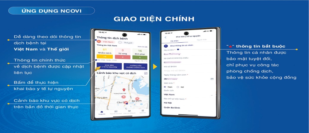 Theo đó, đối với ứng dụng NCOVI, người dùng có thể khai báo y tế cho bản thân và những người thân trong gia đình cũng như cập nhật thông tin sức khỏe cá nhân và người thân hàng ngày. Ngoài ra còn chức năng theo dõi sức khỏe cho phép người dùng cập nhật nhanh các triệu chứng khả nghi, tạo lịch theo dõi sức khỏe, dễ dàng quan sát và nắm bắt các khuyến cáo từ cơ quan y tế.