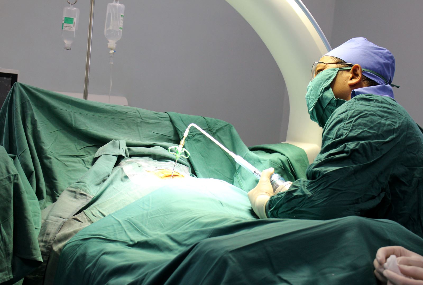 Sau khi hội chẩn, bệnh nhân được chỉ định phẫu thuật tạo hình thân đốt sống bằng cement sinh học qua da. Ca phẫu thuật được thực hiên thành công bởi Thạc sĩ, Bác sĩ Trần Văn Biên – Trưởng khoa PTTK-SN-CS và các cộng sự. 1 ngày sau mổ, bệnh nhân đã đỡ đau hoàn toàn, chỉ còn đau nhẹ vết mổ và có thể đi lại bình thường.